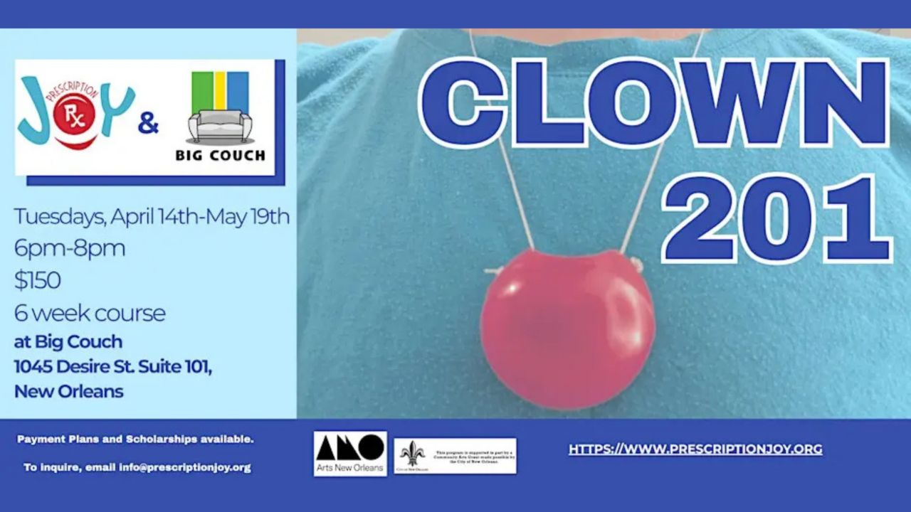 Prerequisites: Clown 101 or approval by the instructor. Participants should wear clothes they can move in and bring a water bottle and a notebook.